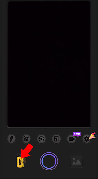 1、下载并打开软件,点击下方左侧的胶卷图标即可解锁选择更多胶卷