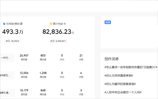 其实很简单,我们在平台上传作品,平台会根据播放量给与我们收益补贴,播放量越高,我们的收益就越高。