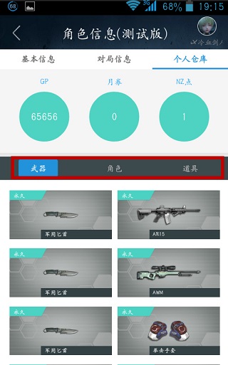 个人、好友战绩查询,对局流水、仓库道具查询。