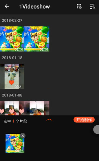 2、选择一个视频,点击开始制作,