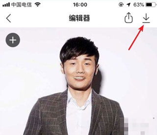 8、编辑完毕照片后,点击应用,选择上方的下载图标,即可保存到手机。