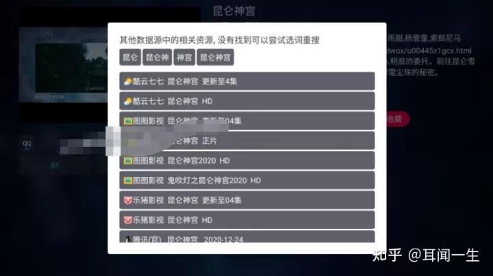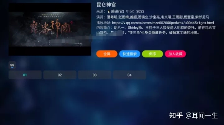 在点播界面,可以显示影片的基本信息、剧集列表,它提供了一个快速搜索功能,其功能与上面的聚合模式是相同的,可以快速搜索相关影视资源,方便你快速切换。