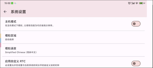 4、系统设置,这里比较关键。switch掌机、主机模式都是这里模拟开启,然后运行switch游戏时的语言和地区也是这里更改的,要退出游戏才能改!