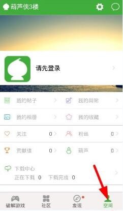 安装完成后,打开这款软件,点击“空间”,进行注册登录,如下图: