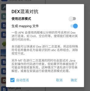 5、APK 编辑功能,主要有 DEX 编辑,ARSC 编辑,XML 编辑,APK 签名、APK 优化、APK 共存、去除签名校验、RES 资源混淆、RES 反资源混淆、翻译模式等。