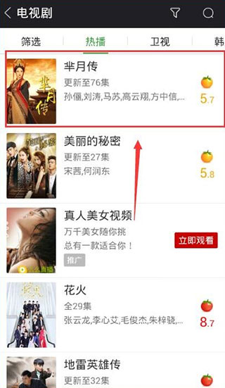 3、在电视剧页面中,选择想缓存的那部电视,如清风小编选择芈月传这部电视剧;