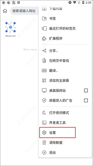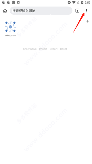 3、准备工作完成后,打开 Kiwi Browser,点击右上角的三个点。