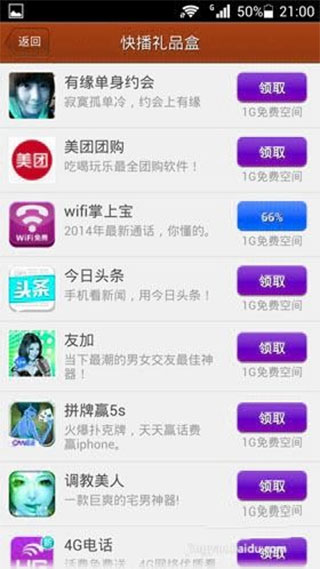 点开是快播礼品盒,点领取会自动下载,完成后提示安装,未完成时点击会取消下载