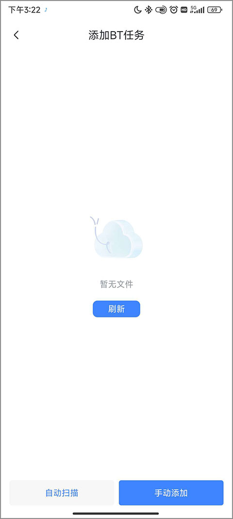 2、然后选择自动扫描即可开始搜索种子文件下载或者进行手动进行添加。