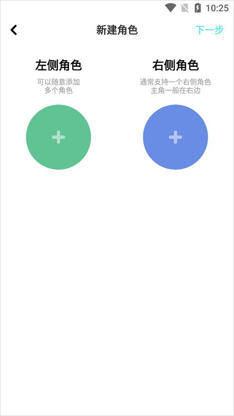 3、接着在打开的新建角色页面中,进行角色选定,用户需要多个角色可以点击左侧绿色添加按钮进行添加,用户还需要一个主角就点击右侧蓝色添加按钮进行添加