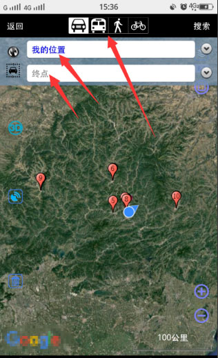 路线,选择到达目的地的交通方式后,确定起点和终点,自动生成导航路线图;