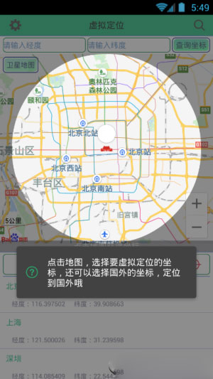 2、进入“虚拟定位精灵”主界面,选择要定位的位置或者输入要定位位置的经纬度;