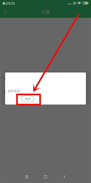 5、进入到定时停止播放这个页面中之后,在该页面中我们找到定时关闭这个选项,点击该选项下方的关闭按钮,即可成功关闭该功能。