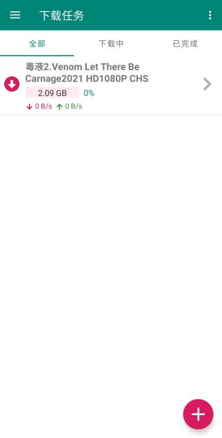 1、点击右下角的加号即可添加种子文件或者磁力链接;