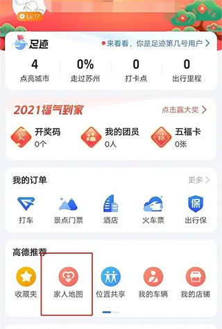 点击家人地图打开高德地图,点击我的,点击家人地图。
