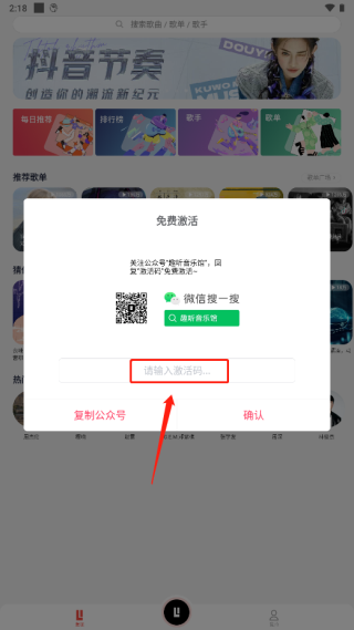 1、下载安装趣听音乐,打开app复制公众号
