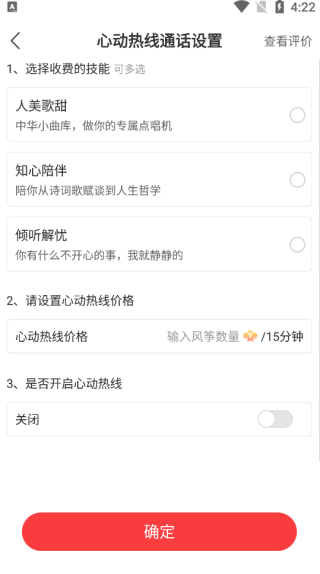 4、你设置你想要连麦的价格,内容也能自主选择,接下来就开启就能接单啦。