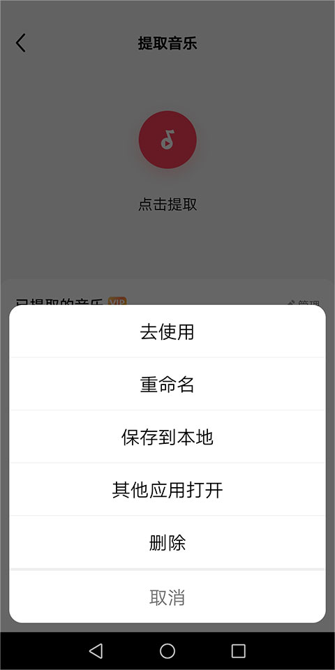 提取成功后点击提取出的音频文件右侧的功能菜单(下图绿色箭头所指)