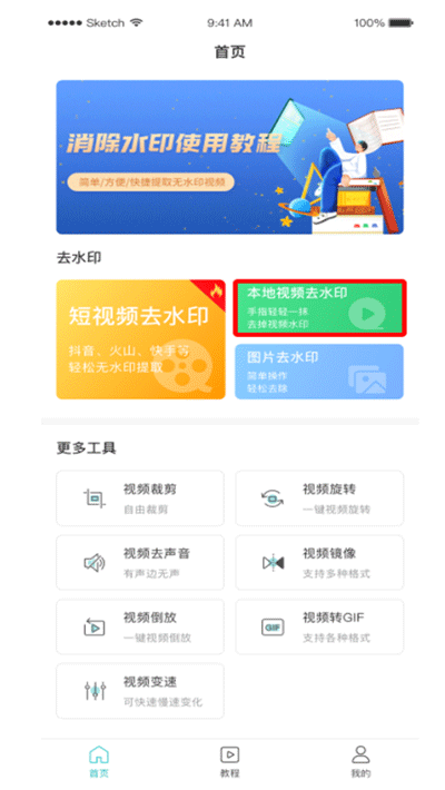 1、进入首页后,点击本地视频去水印