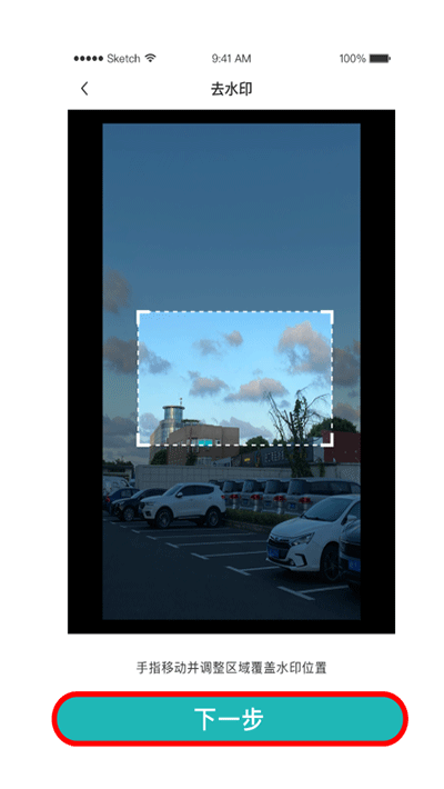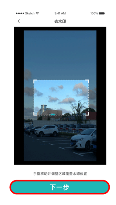 3、用手指画出图片中需要去除的区域,点击下一步
