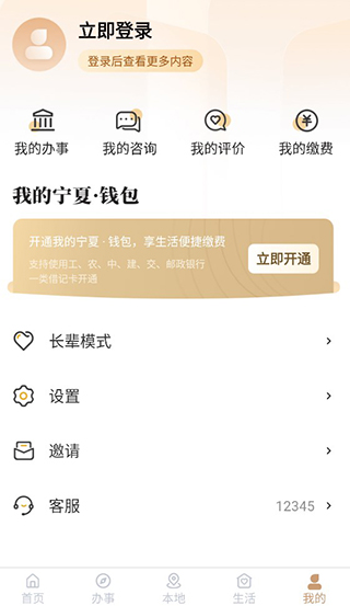 用户在登录后点击我的就可以进入个人中心啦,可以查看自己的办事进度等