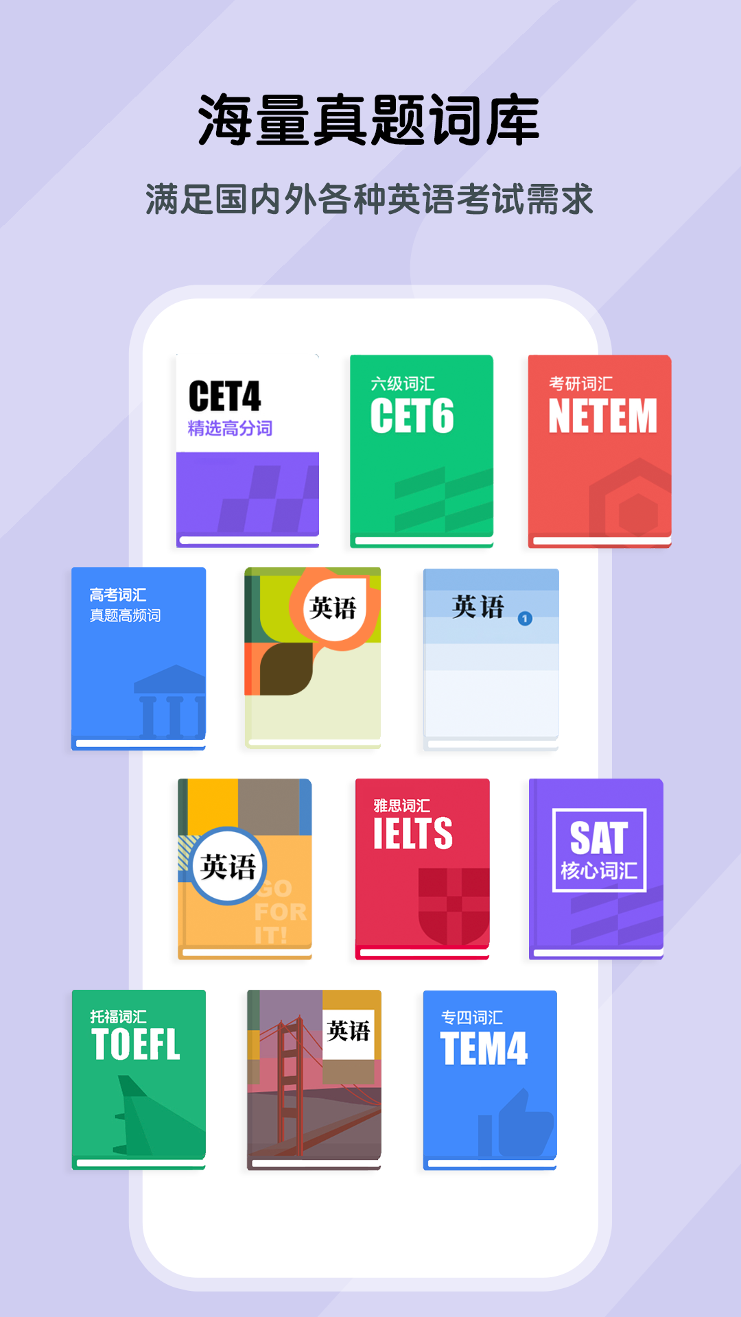 海量词库:小学/初中/高中/四六级/考研/托福/雅思/专四/专八/托业/托福/