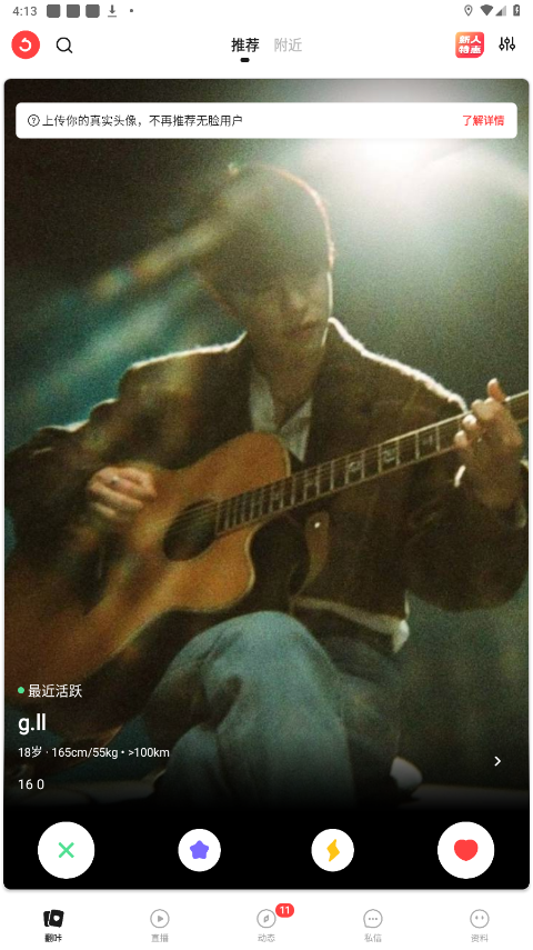 翻咔是一款十分热门的交友平台,该软件为用户提供了一个非常轻松、有趣和安全的平台,让用户能够在该软件中结交新的朋友,扩展自己的新的朋友圈,想要注册该软件便需要填写个人资料,包括照片、兴趣爱好、个人描述等,所以该软件中的所有人都是实名认证、都是真实照片。该软件采用了创新的匹配算法和交友机制,它能够根据用户的个人资料和偏好,为用户推荐兴趣爱好相同的朋友。感兴趣的朋友不妨下载尝试一番吧!