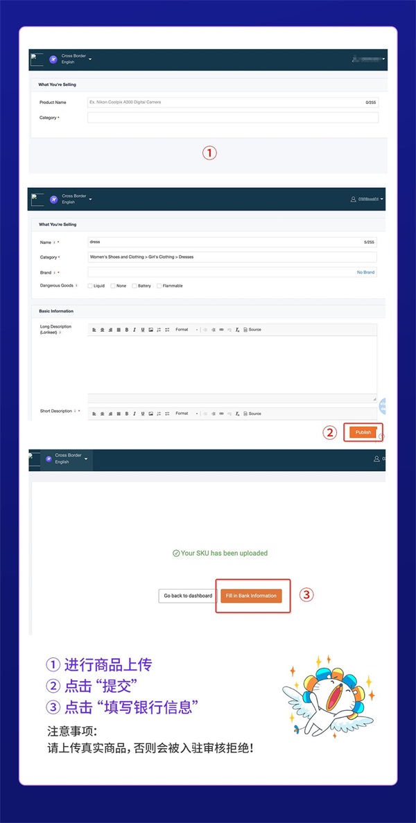 当店铺审核通过后,商家朋友们即可上传发布产品,开始运营店铺操作: