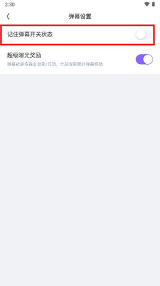 4、然后把【记住弹幕开关状态】的按钮开启即可。