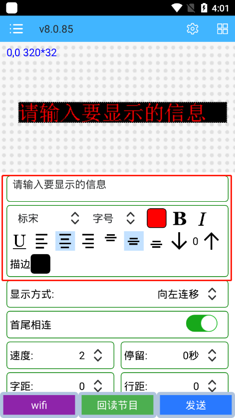 瑞合信Plus官方版是一款专为瑞合信led手机设计的控制软件。它支持多个瑞合信led品类,可以实现LED显示屏控制、全彩系统控制、单双色自由切换等功能。同时,它还提供数据调节功能,操作简单方便。该软件采用了无线网络产品,通过修改工具选择,可以轻松更改字体的样式和颜色等,能够有效解决所有LED控制的问题,非常专业。有需要的朋友不妨下载尝试一番吧。