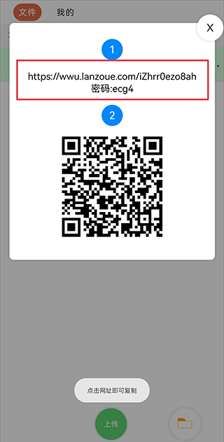 7、最后点击该文件将呈现出的分享链接与密码复制给好友,好友通过使用链接和密码就能接受文件了