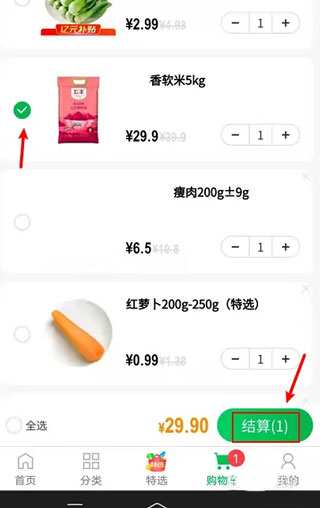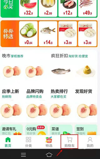 1、手机打开朴朴,事先加入商品到购物车后,再点击“购物车”。