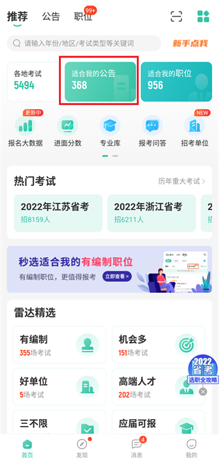 1、点击[首页][适合我的公告]-进入考试公告列表