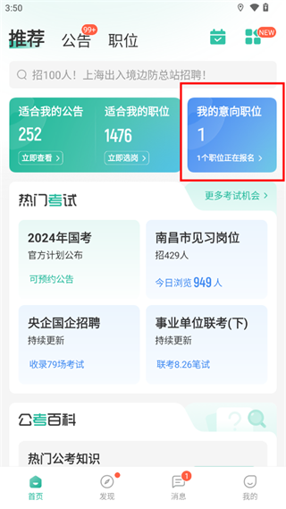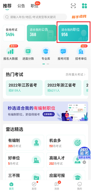 职位怎么选?智能匹配职位,一键“量身定制”专属公考机会,职位竞争力一目了然,1分钟选定好职位。