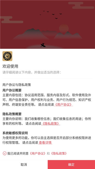 1、首先在本站下载并安装周易算命app,点击进入软件,同意用户协议。