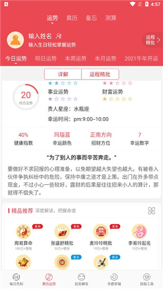 2、周易算命:该功能将详细揭晓您一生的秘密,从八字精辟、婚姻家庭,到学业事业,周易算命都可以详尽为您解答。