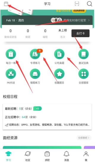 1、学习● 每日一练,专项练习,公司真题,面试宝典。海量题目任你挑选,完成每日刷题挑战,获得实时排行冠军,更有刷题日历可查哦