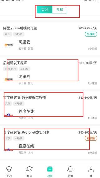● 实习社招,各种大厂的招聘信息都发布在了app上,找到适合自己的才是最好的