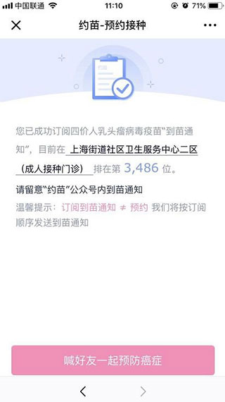 有些小伙伴把“订阅到苗通知”与“预约疫苗”混淆;到苗通知是“疫苗到院”的提醒,并非预约疫苗成功哦,