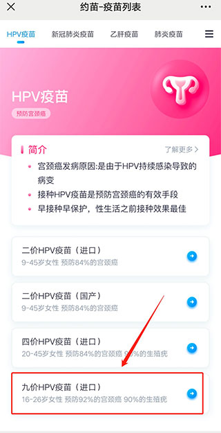 4、在这款软件里有很多的接种疫苗,分类也是非常详细的,根据自己的需要可以进行预约。