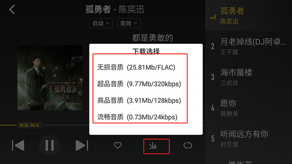 2、进入歌单就能免费播放收听,还能一键离线下载,没有网络也能享受音乐的乐趣;