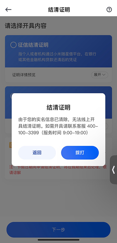 三、如何开具随星借结清证明?