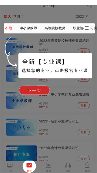 2、可以在“专业”页面,选择自己的专业,点击报名专业课