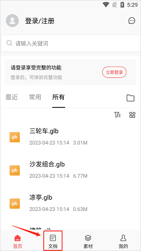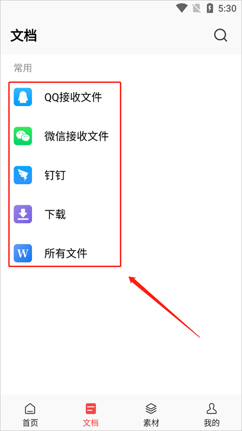 2、进入应用首页,选择“文档”。
