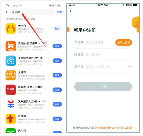 安装完成后,点击“新用户注册”,输入手机号、验证码、密码,完成注册后登录APP。