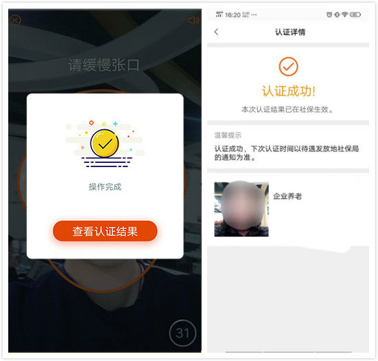 A:进入“首页→社保”页面,进入参保人列表页面, 点击对应的参保人姓名即可查看认证结果,如提示“认证成功”则表示认证通过,社保已生效!