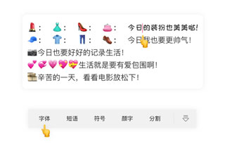 3、输入文案后,把光标移动到你想要改变字体的内容中间,点击工具栏上的“字体”,即可自由选择你都要的特殊字体效果啦!
