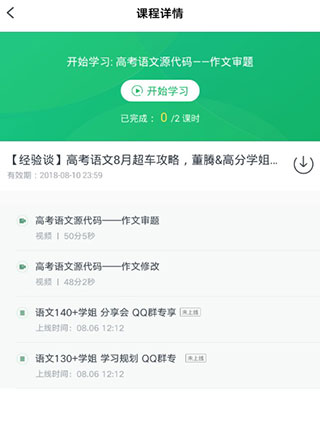 2、然后打开有道精品课的学习页面,通过页面右侧的下载按钮,就可以将其中的课程视频保存到手机本地。