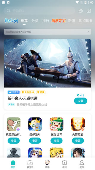 2、选择或者搜索喜欢的游戏并打开,点击底端的“安装”选项就可以。