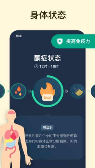 APP将随着禁食时间而提示您身体状况各阶段将产生的变化,如:血糖水平、糖原储备、代谢状态等。